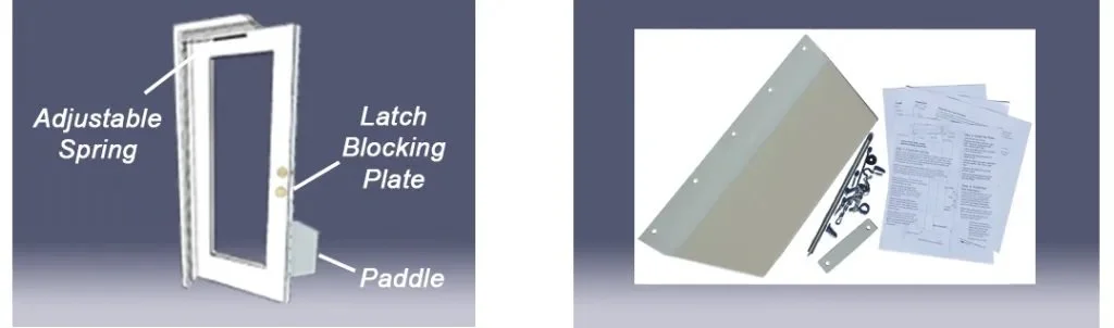 The In-n-out Pet Door works on single or double glass, French, and solid in swinging or out swinging doors. Check out the videos on their website to see how the In-n_out door operates.