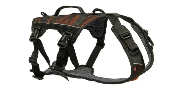 A multi-use dog harness designed for power transfer when pulling, making it suitable for daily walks and trekking as well as obstacle racing or biking.
